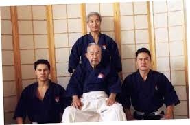Hiroo’s two sons continue to help in developing the Yoseikan system and are shown in the photo opposite with their father and grandfather – Mitchi Mochizuki (5th Dan) on the left and Kyoshi Mochizuki (4th Dan)on the right of the photo.